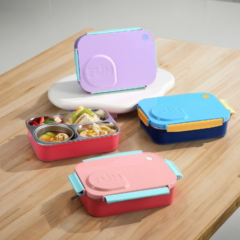 Bolso impreso en 3D Fiambrera de acero inoxidable con 3 compartimentos (850ml) con contenedor de comida para niños a prueba de fugas de silicona individual