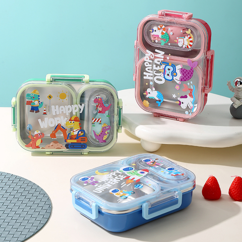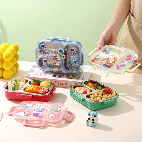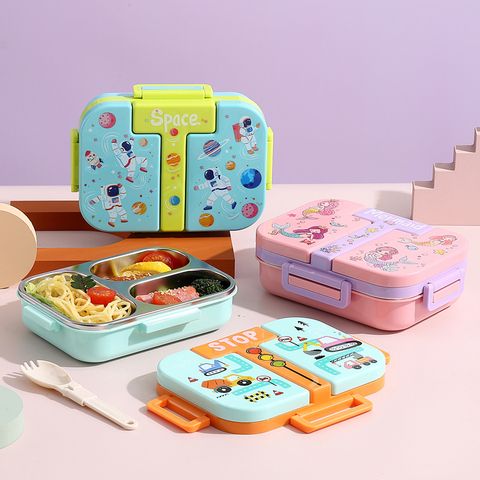 Phim Hoạt Hình Phong Cách 600Ml Thép Không Gỉ Hộp Ăn Trưa 3 Lưới Độc Lập Kín Vòng Với PP Gấp Súp Muỗng Nĩa Cho Các Trường Học Trẻ Em